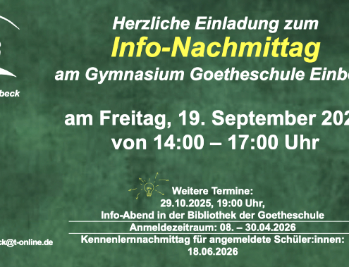 Es erwartet Euch und Sie ein spannender Parcours durch unsere Goetheschule, in dessen Verlauf Ihr und Sie unsere Lehrer*innen, viele aktuelle Goetheschüler*innen, das Gebäude und vieles, vieles mehr kennenlernen können! Hier finden Sie unseren Flyer inklusive einer Übersicht zum zeitlichen Ablauf.