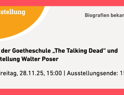 Unter dem Titel „The Talking Dead – Wenn Tote sprechen könnten…“ haben 12 Schüler*innen der Goetheschule Einbeck in ihrem Seminarfach Geschichte und in Zusammenarbeit mit dem Stadtarchiv und Stadtmuseum Einbecks eine Sonderausstellung kreiert, die am 28.11. ihre Pforten öffnet und sieben spannende Persönlichkeiten der Einbecker Stadtgeschichte präsentiert. Es lohnt sich!