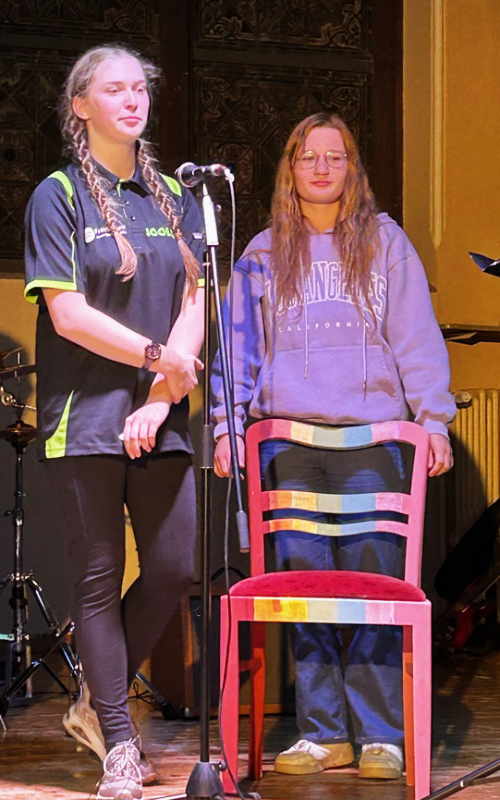 (leonie.h.) Wir, die Klasse 8b sowie Johanna, Juliana , Greta und Lisa aus der Klasse 9c veranstalteten am 12.11.25 einen Benefizabend zum Thema „Dem Frieden Zeichen und Stimmen geben” im Rahmen der diesjährigen Friedens Dekade „Komm den Frieden wecken” durch.