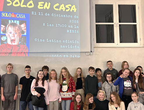 Unter dem Motto „Kevin solo en casa – Wir zusammen in der Goetheschule“ erlebten Goetheschüler*innen verschiedener Altersgruppen einen ganz besonderen spanischen Kinoabend. In gemütlicher, vorweihnachtlicher Stimmung aßen wir gemeinsam Pizza. Es war spannend, unsere Schule einmal ganz anders – nämlich abends und leer – zu erleben.