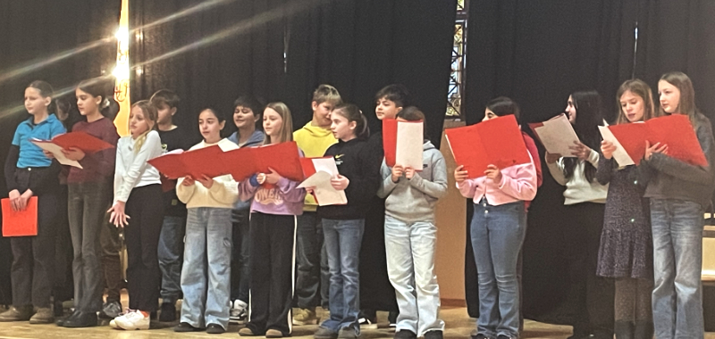 Der Schulentscheid wurde vor „großem Publikum“, nämlich vor dem gesamten sechsten Jahrgang, durchgeführt. Goethe Technik mit Malte Dahlmann sorgte dafür, dass die Lesestimmen der jungen Vorleserinnen in der Aula gut hörbar waren. Musikalisch wurde die Veranstaltung abgerundet durch stimmungsvolle Weihnachtslieder, vorgetragen von der Klasse 5a unter der Leitung von Dorothea Wolfrum.