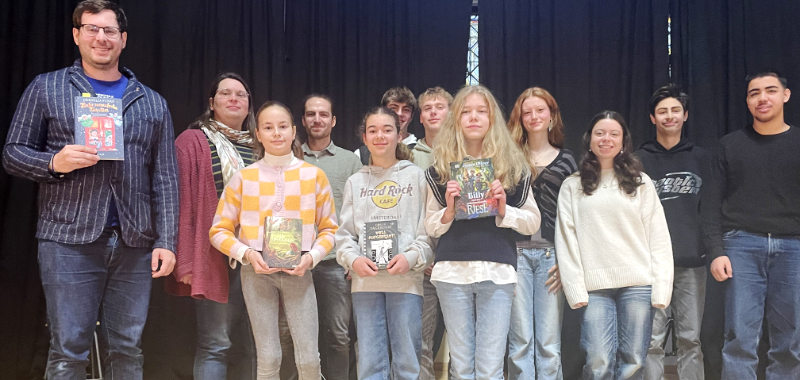 Alle Teilnehmerinnen boten der Jury ein gelungenes Vorleseerlebnis. Die Jury bestand aus Olivia Wielandt, Melisande Grund, Mohamed Ismaiylat, Yahya Al-Doori, Kimi Böker und Jordan Schierding aus dem 11. Jahrgang als Vertreter:innen der Deutschkurse der Oberstufe sowie aus den Deutschlehrer:innen des 6. Jahrgangs Cornelia van Waveren, Dr. Kai Wolf, Jakob Dreher und Dr. Susanne Mosler.